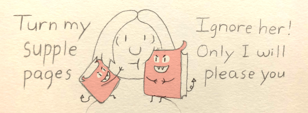 The boring dystopia of Succubus Temptations is certainly relatable, but I never felt like I was there. I wanted to see how normal people react to sex demons, and what exactly is happening in this apocalypse. The setting is clearly a backdrop for sex. And aside from all the gagging, the sex scenes aren’t bad. They’re presented as a guileless teen fantasy, complete with descriptions of length and girth. The unadorned language gets a little repetitive (I kept a running tally of uses of the word “clit,” but I can’t tell you the result because I scribbled it out and wrote “What am I doing with my life I have a degree” over it), but it works. The overall result, of wanton sex in a vaguely crumbling society, feels cathartic.